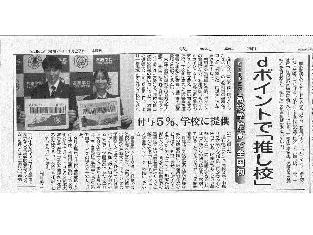 NTTドコモの共通ポイント【dポイント】を利用し、母校の推し活をする“dポイント推し校応援プログラム”の取り組みを全国初で開始しました。