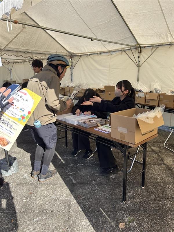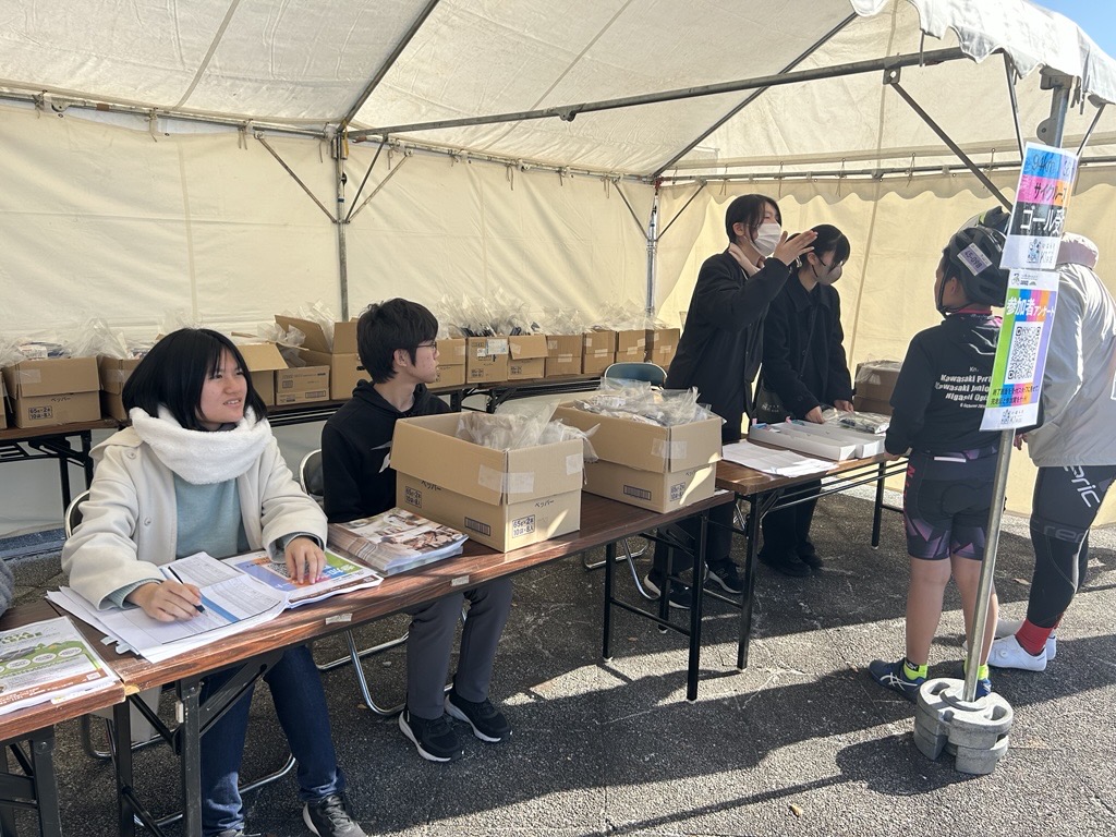 選手の方々の出走受付やお荷物預かり、ゴール後の記念品のお渡し等を担当させて頂きました。