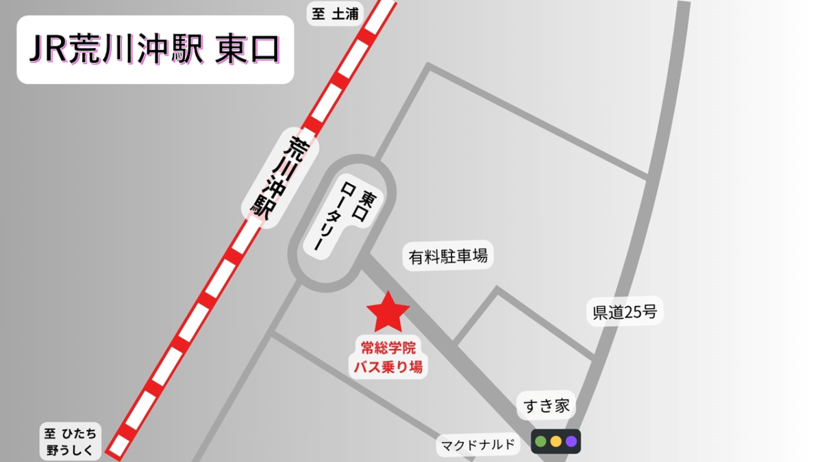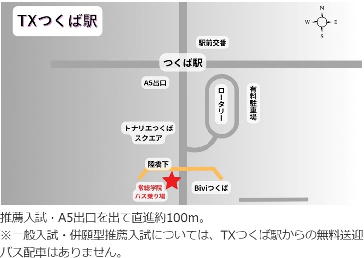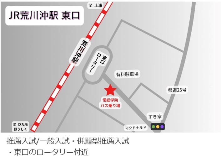 ※一般入試(1月20日(火))について、牛久市・龍ケ崎市の受験生は、荒川沖駅着8:00の普通列車をご利用ください。駅周辺の混雑を考慮し、ご協力をお願い致します。