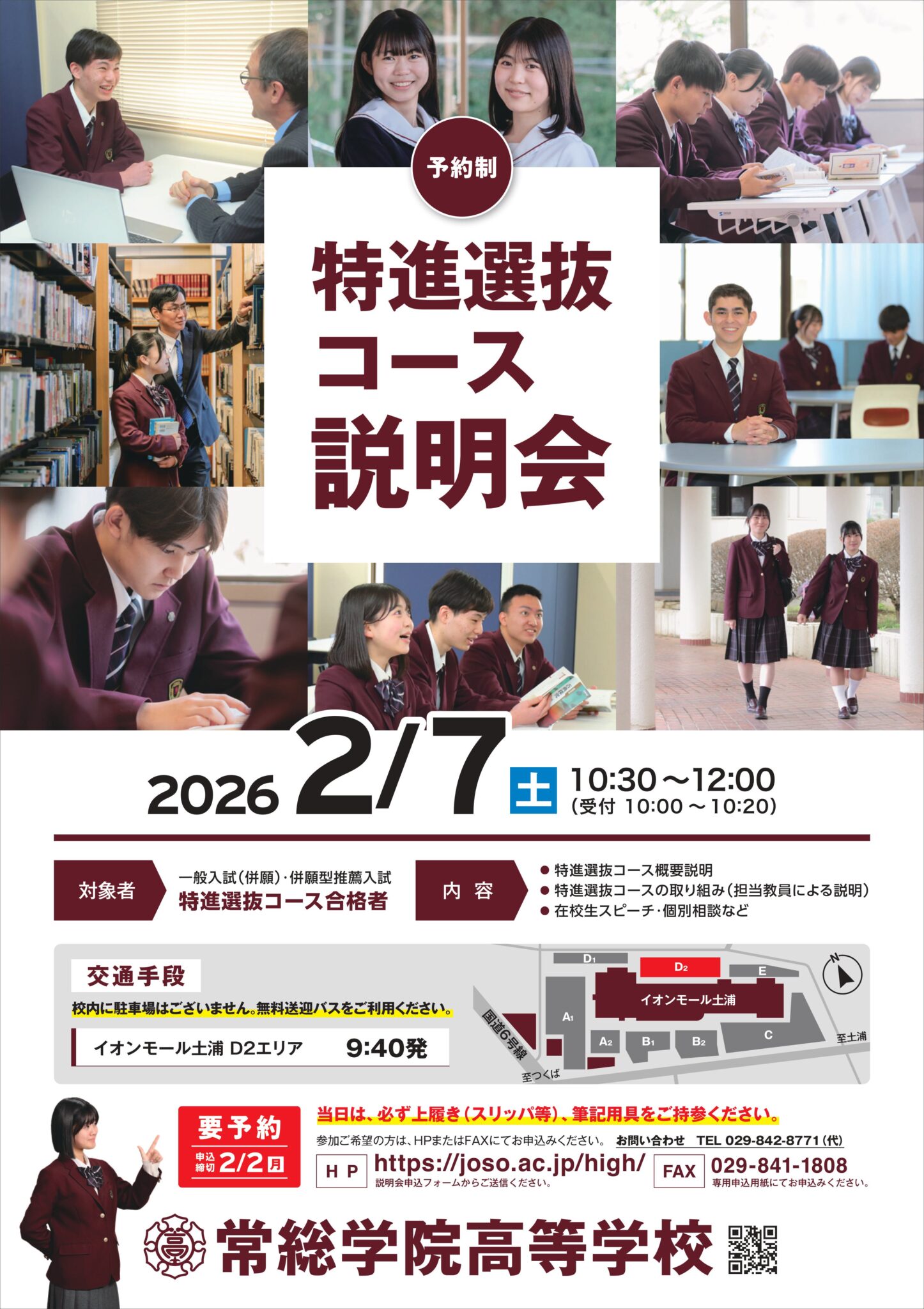 令和8年2月7日(土)に、一般入試(併願)・併願型推薦入試の特進選抜コース合格者を対象に、「特進選抜コース説明会」を実施いたします。