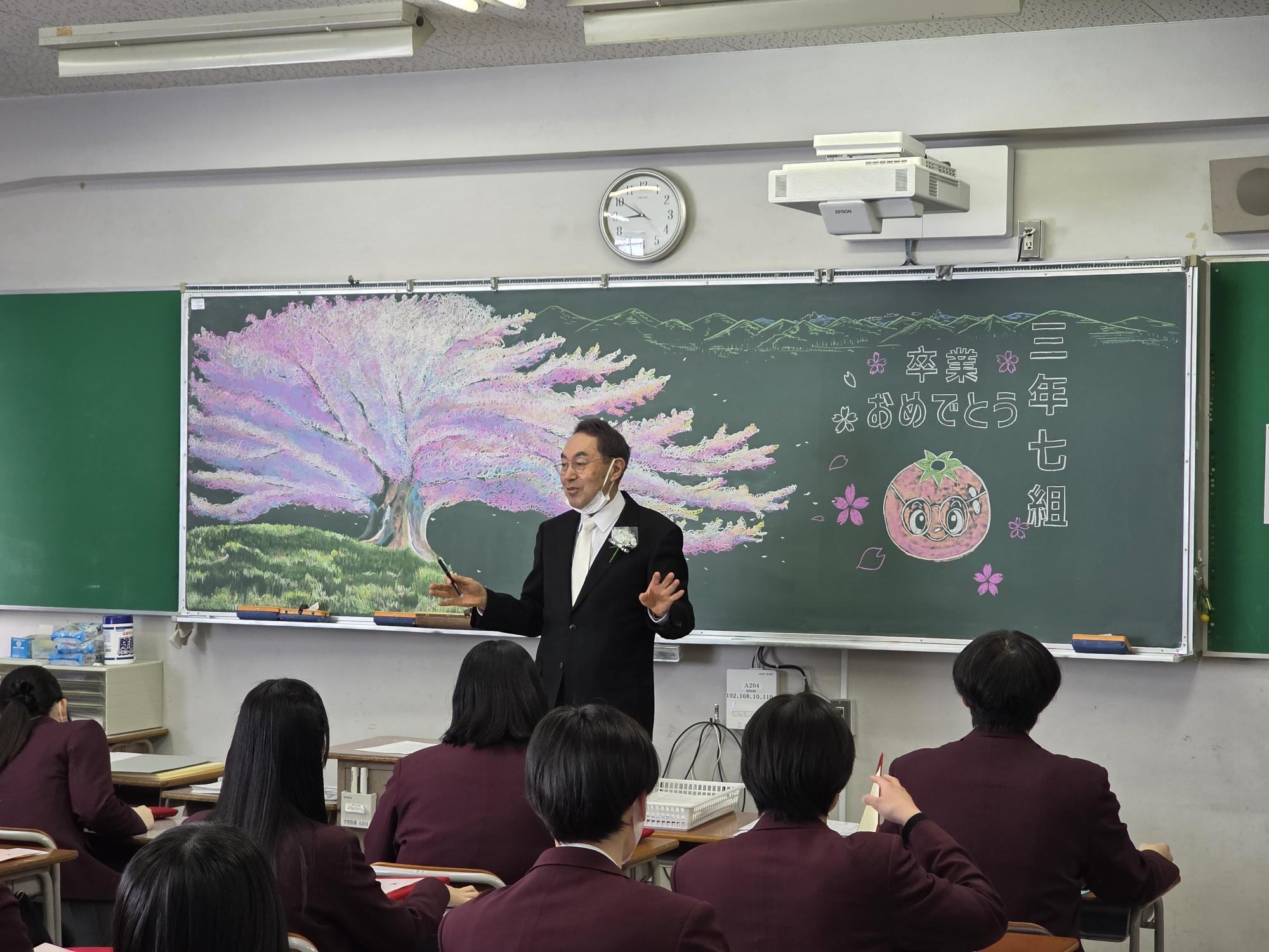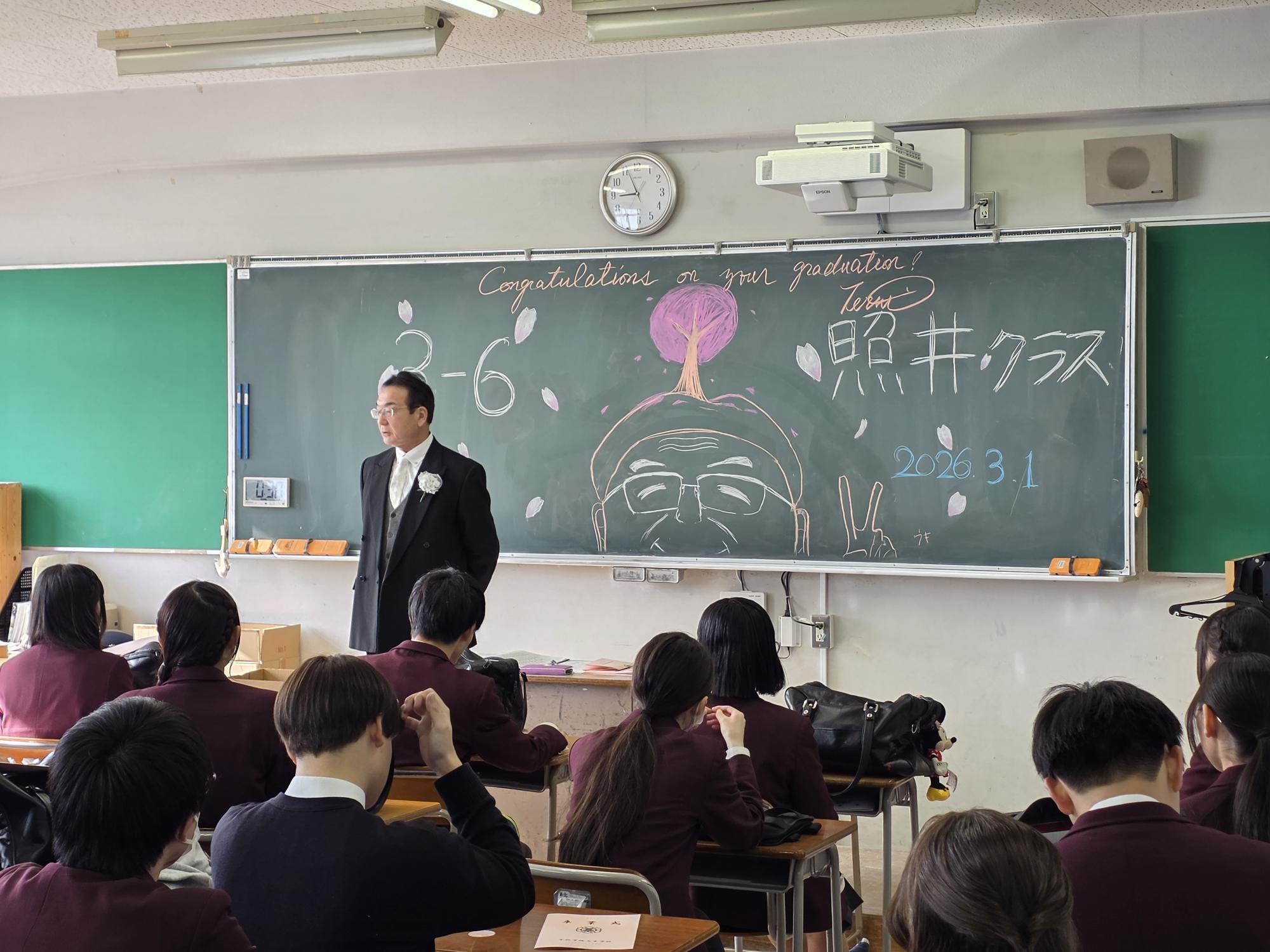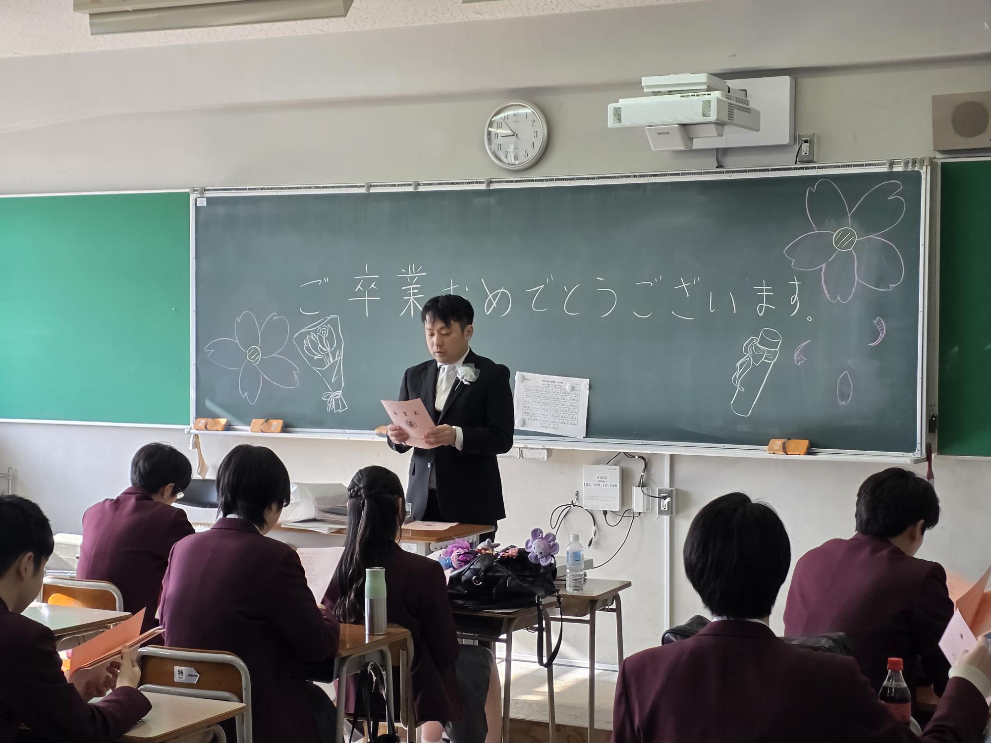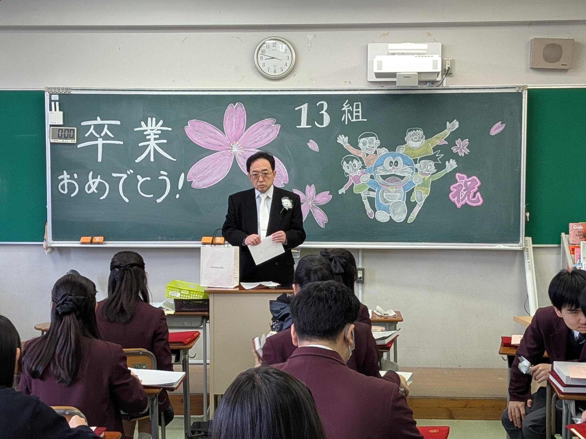 担任から一人ひとりに思いが込められた最後のホームルームでは、三年間の歩みを振り返りながら、教室が温かな拍手と涙に包まれる感動的な時間となりました。