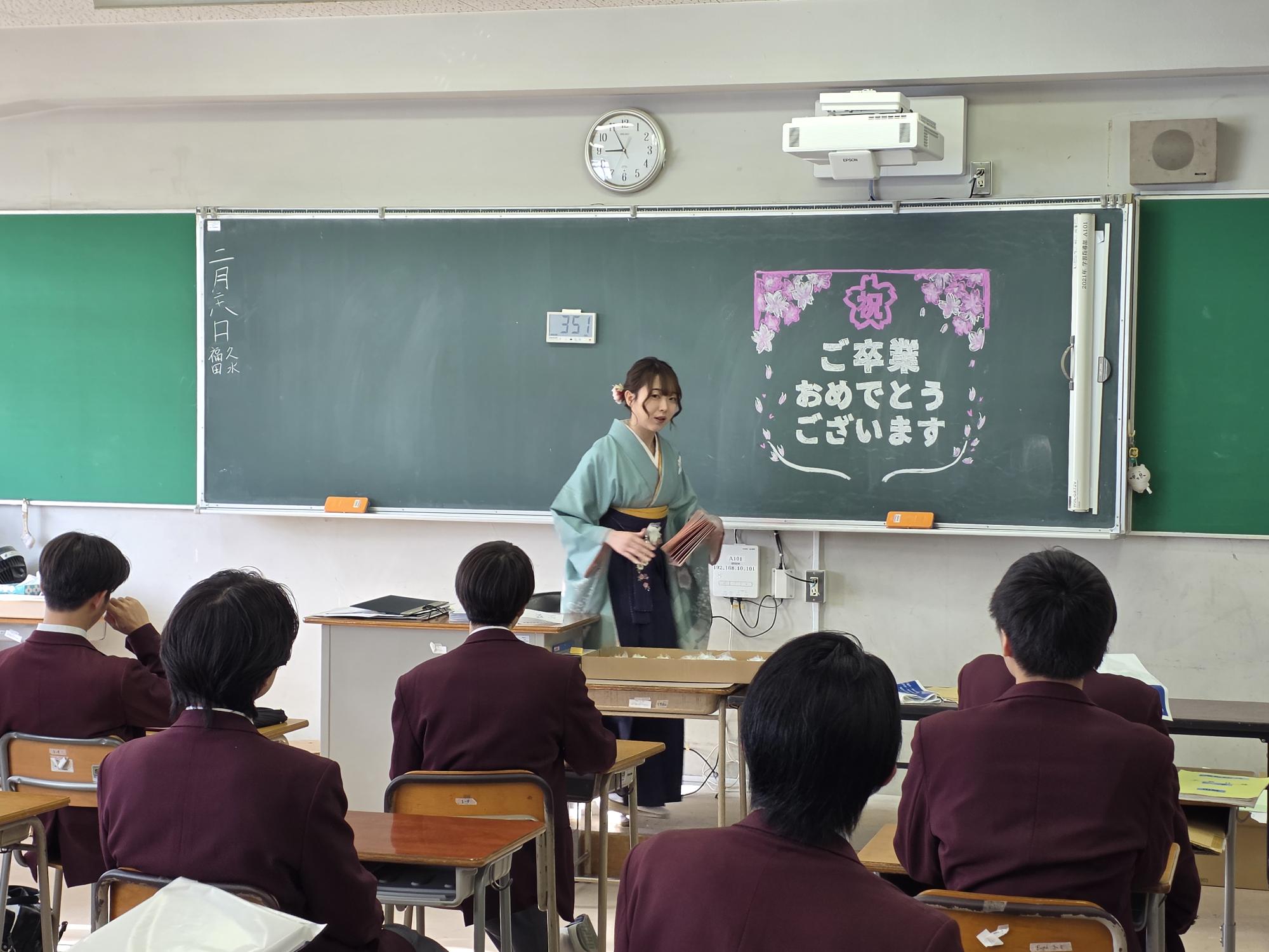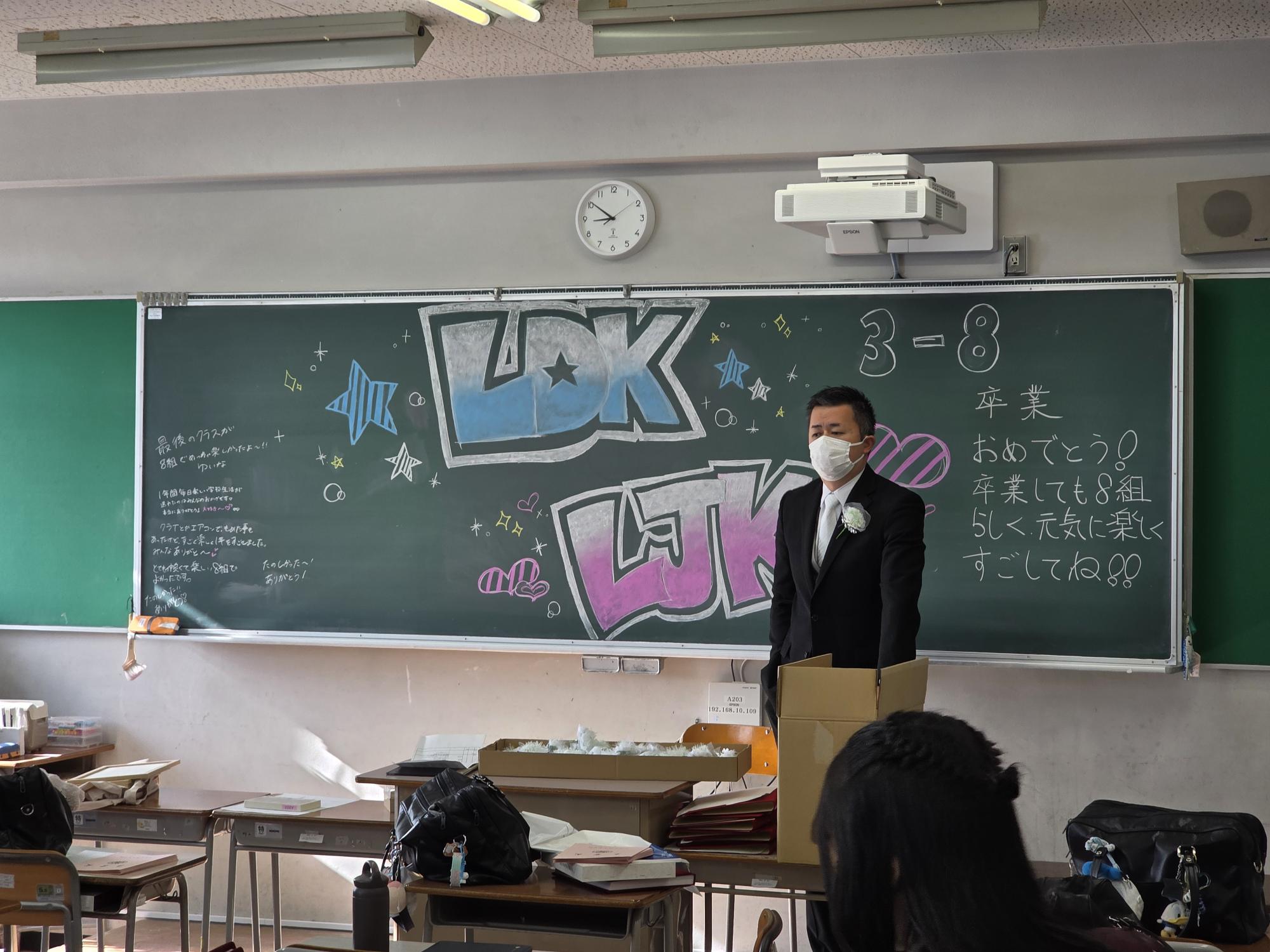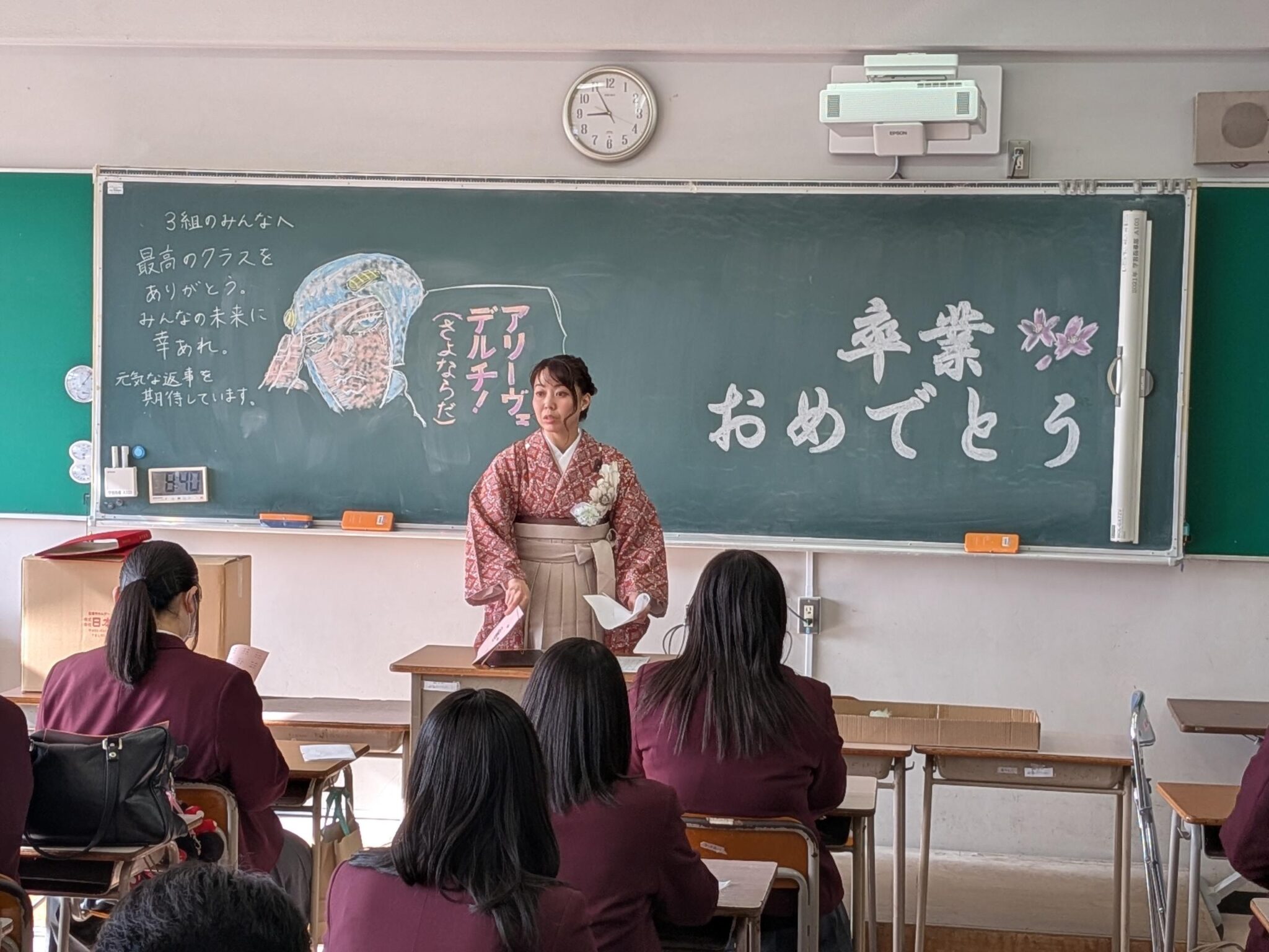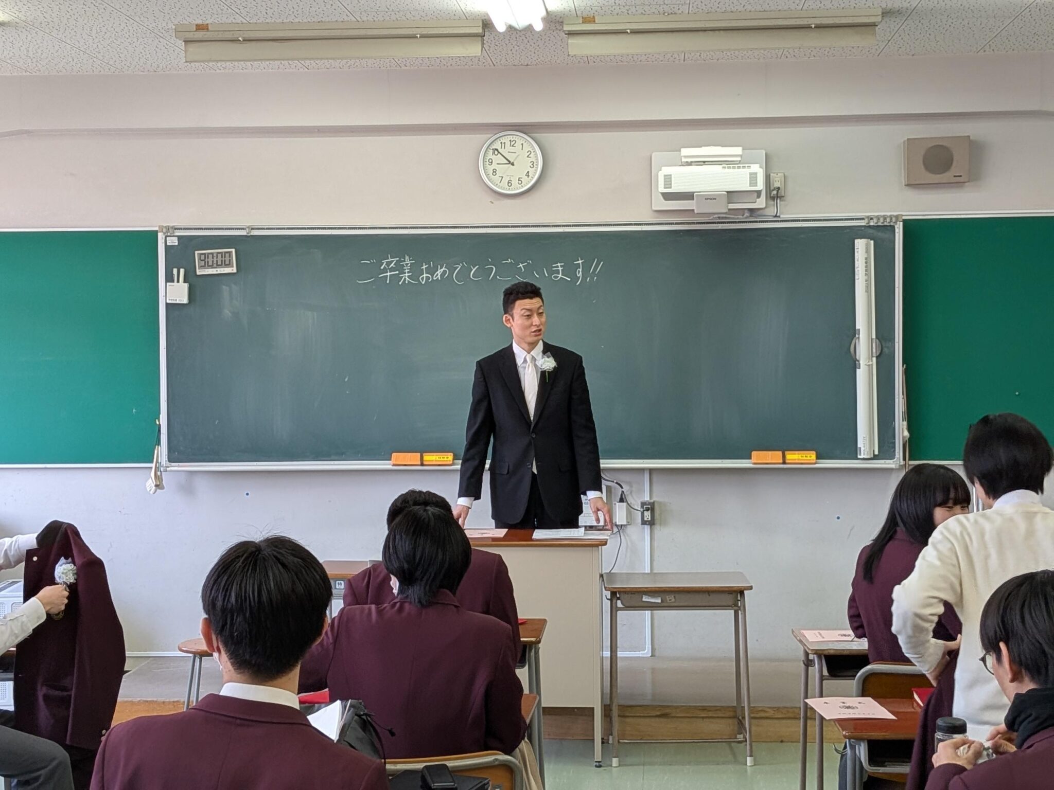 担任から一人ひとりに思いが込められた最後のホームルームでは、三年間の歩みを振り返りながら、教室が温かな拍手と涙に包まれる感動的な時間となりました。