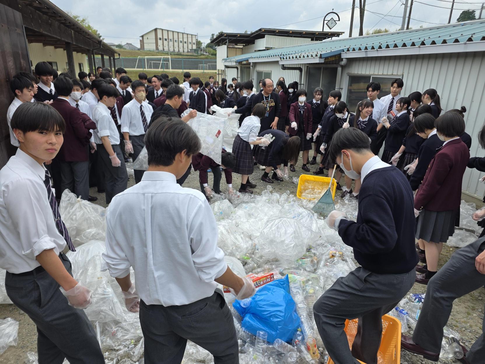 1・2学年の進学選抜コースフロンティアで、ペットボトルのリサイクル活動を行いました。