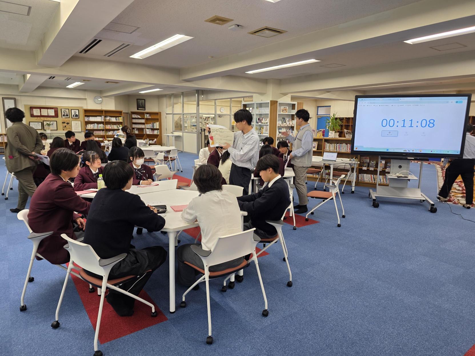 2学期のプログレスコース説明会での中間発表に向けて、生徒たちは探究活動を進めていきます。