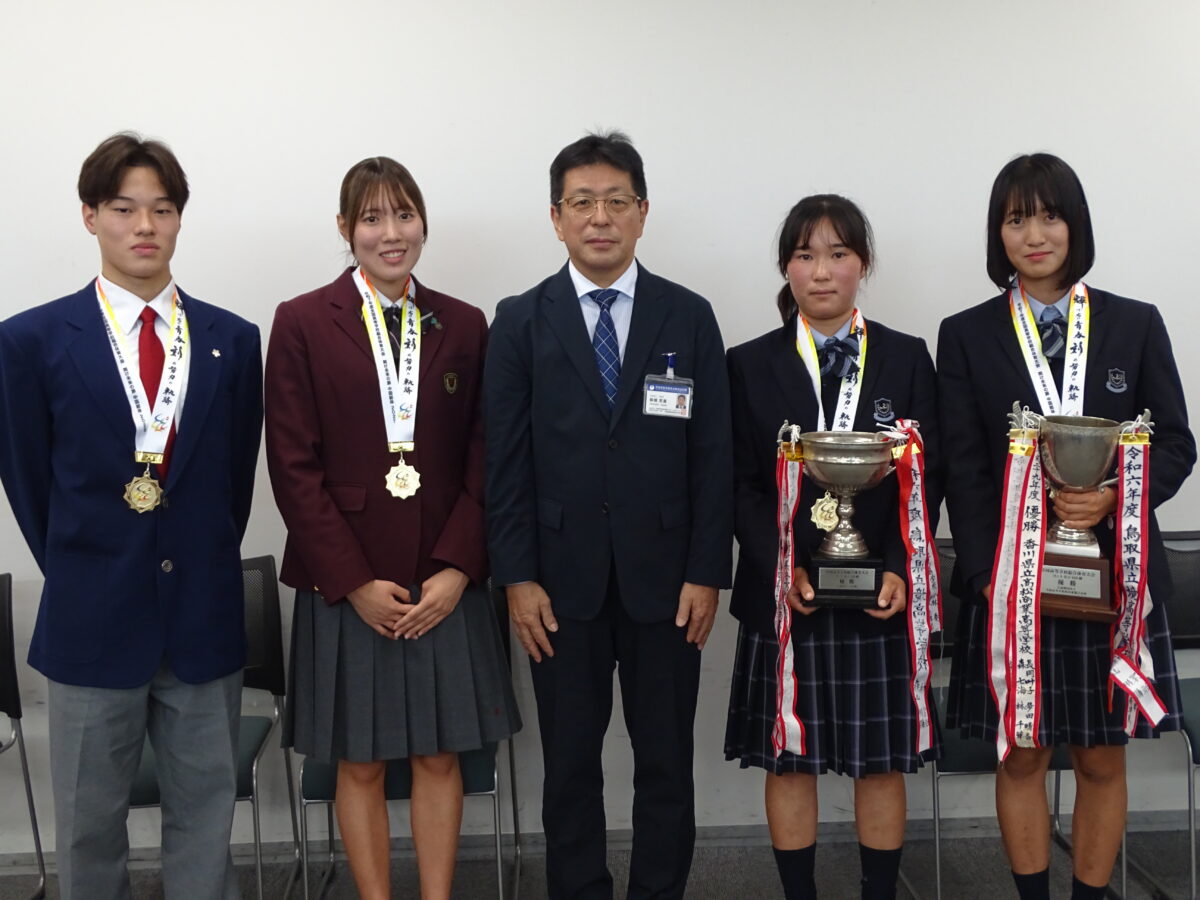 水泳部所属3年の中澤 心暖さんが、インターハイ優勝の報告のため、他校生徒とともに茨城県教育委員会の教育長を表敬訪問いたしました。訪問の場では、優勝の報告に加え、「今後も練習を重ね、世界レベルでも戦うことのできる選手を目指します」と、今後の抱負を力強く述べました。引き続き、本校水泳部の応援をお願いいたします。