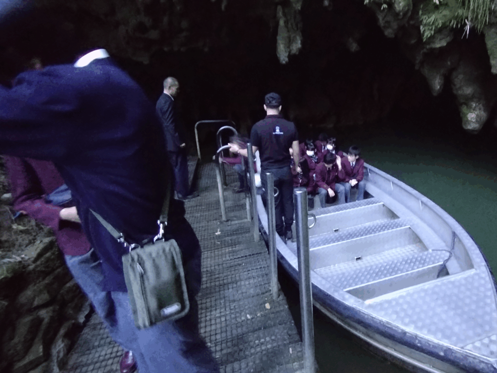 成田空港より出発し、オークランドへ向かいました。出国手続きや機内での英語によるやりとりなど、生徒たちにとって初めての経験が多く、緊張しながらも積極的に取り組んでいました。途中、ワイトモ鍾乳洞を訪れ、土ボタルの幻想的な光に感動する場面もありました。