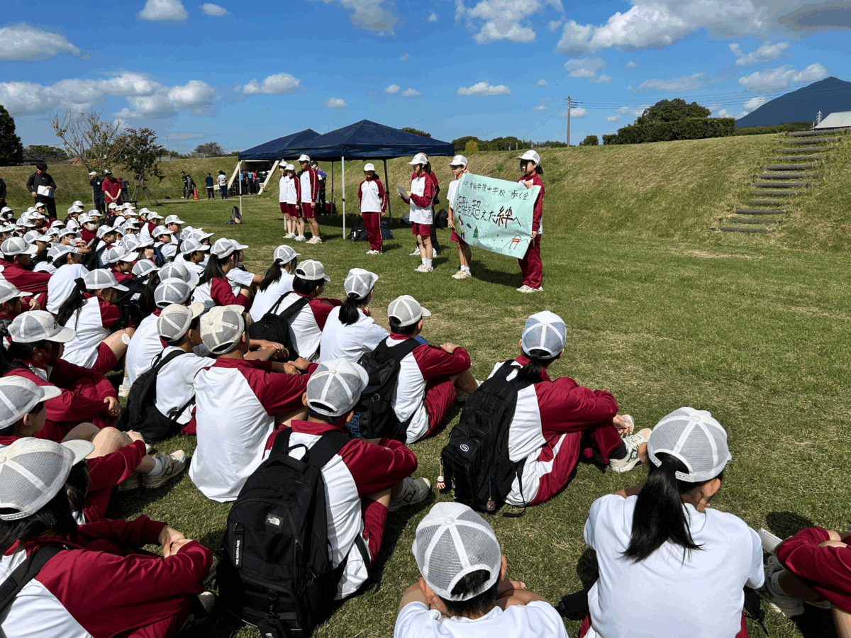 10月10日(金)に歩く会を行いました。今年度は、つくば市にある小田城跡歴史ひろばから出発し宝篋山を山頂まで登り、景色を堪能してきました。歩く会当日は、天候にも恵まれ気持ちの良い気候の中で登山から下山までを行うことができ、中学校の全校生徒が互いに声を掛け励まし合いながら歩く会を終えることができました。
