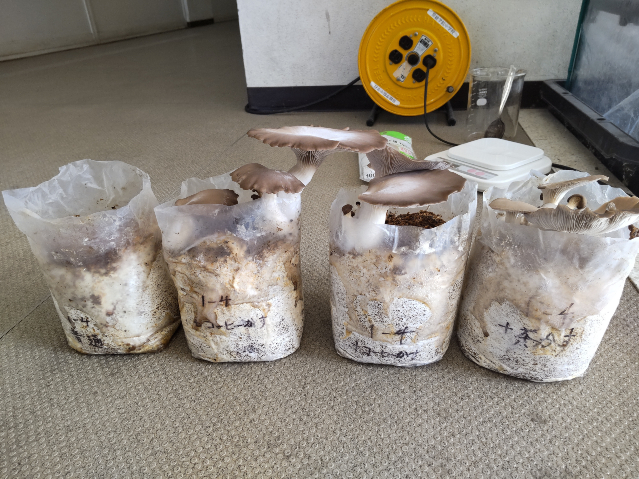 12月に発生処理をおこなったヒラタケの育成状況をグループごとにまとめ、発表のためのデータ整理、スライド作成を行いました。ヒラタケは適宜、収穫を行っていますが、この日もよく育ったグループの収穫を行いました。