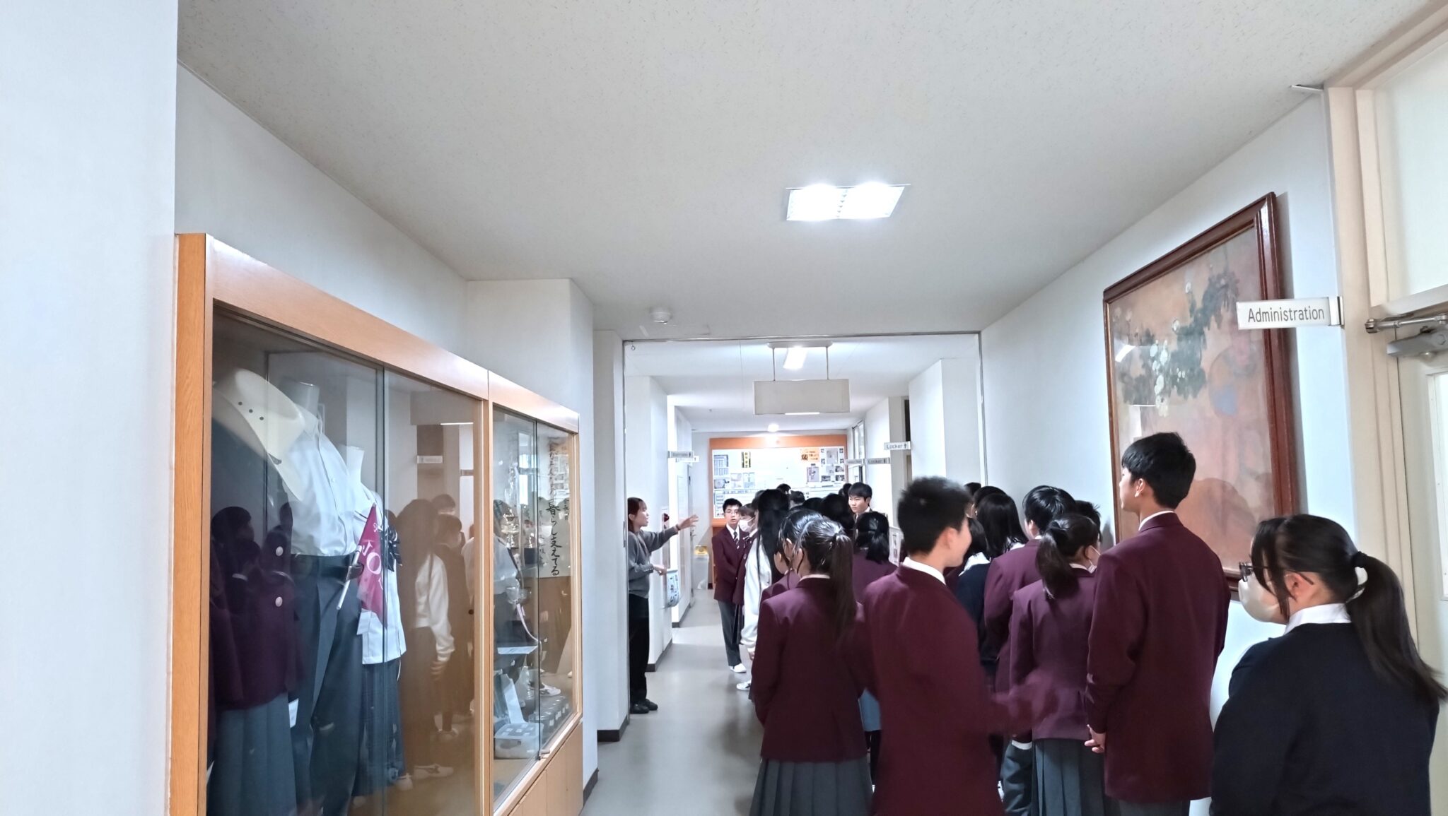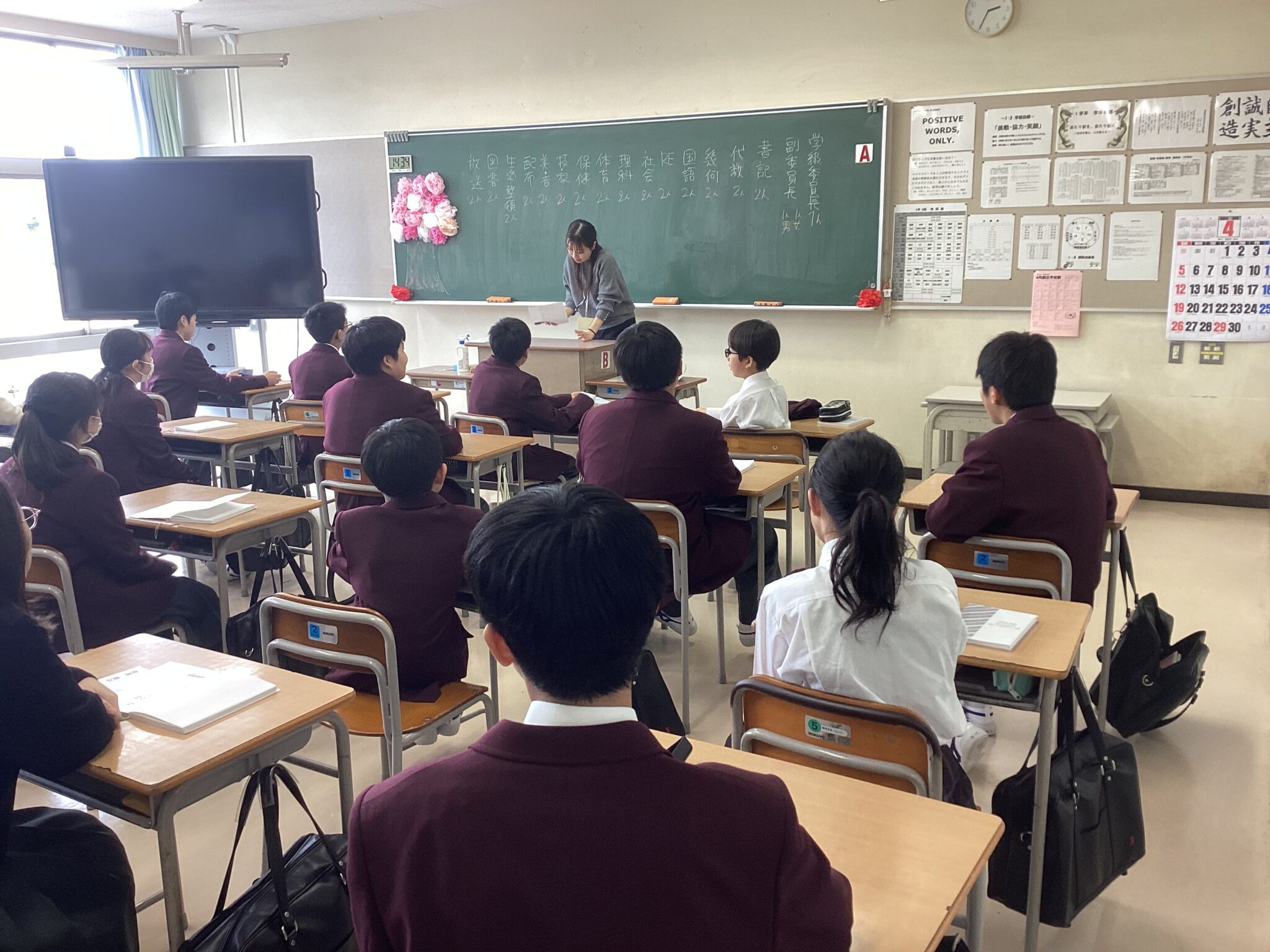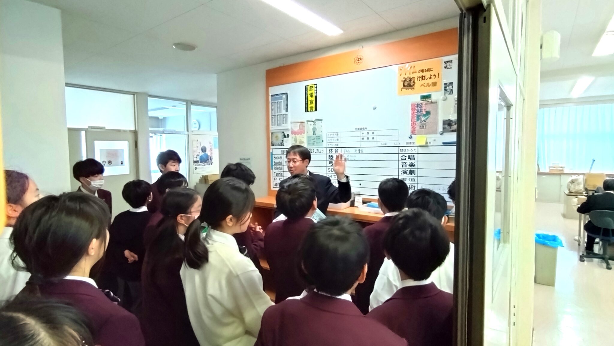 正面には100インチのデジタルサイネージがあり,生徒たちに向けて最新情報を表示しています。