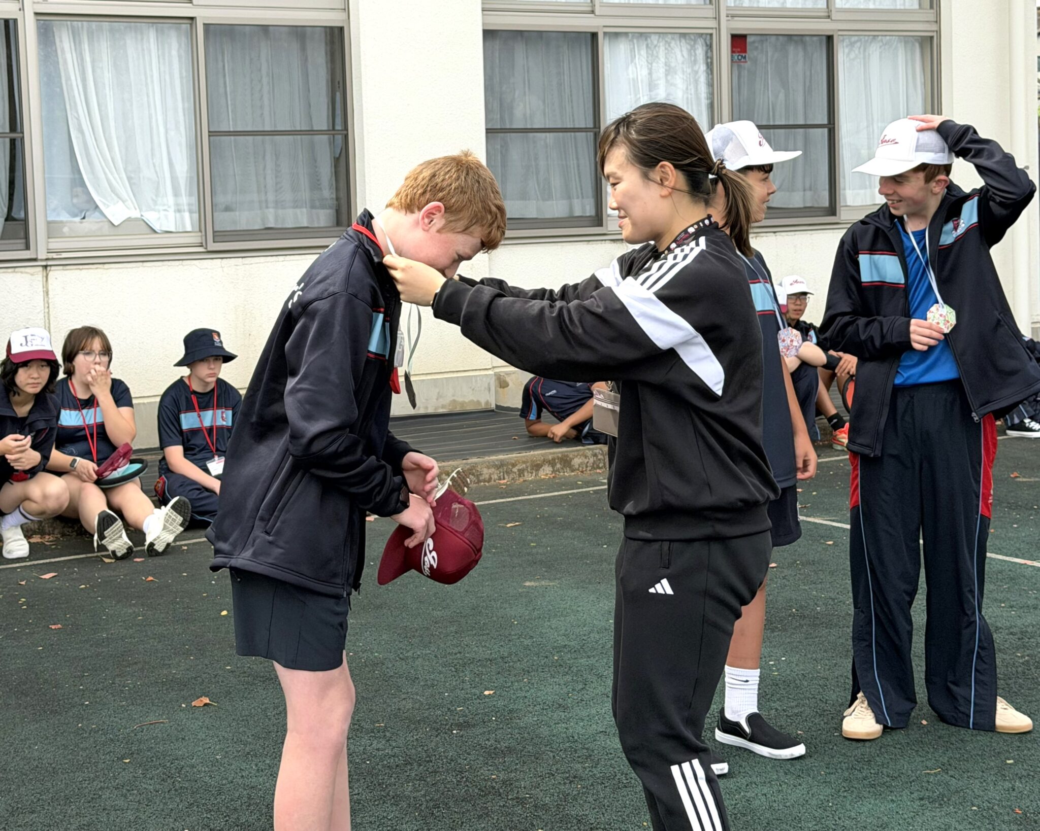 本校交流校であるニュージーランドのセントピータース校生徒が、ジャパンツアーの一環として本校に訪れ、3年生の生徒が考えたプログラムにそって一日学校体験をしました。9月に行う予定のニュージーランドへの海外研修に向けて、生徒たちにとって意欲と自信とそして楽しみにつながりました。